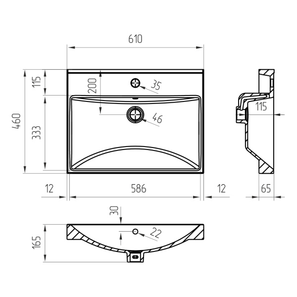 2. Врезные. Монтаж в отверстие с полным скрытием раковины под столешницей.
