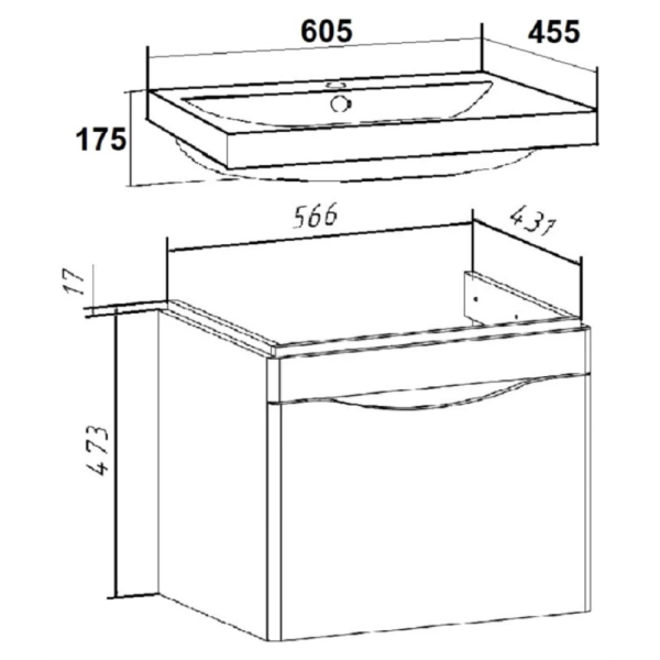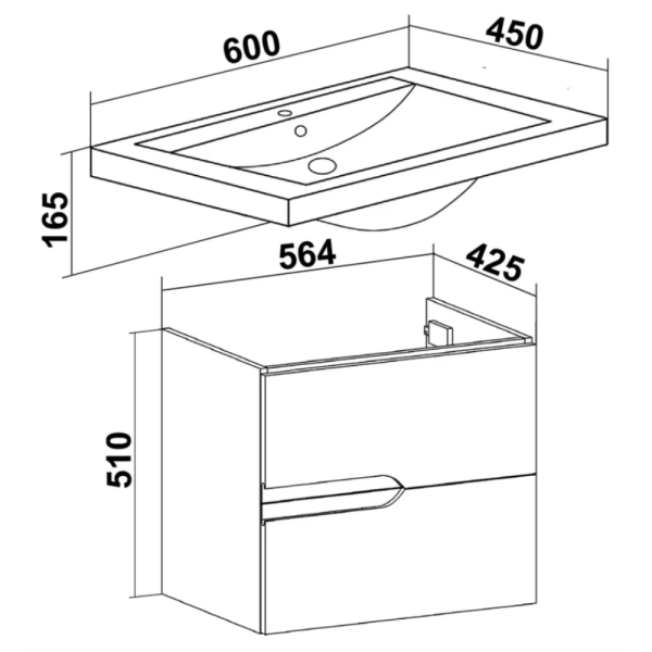 Тумба с раковиной 60 подвесная Frame RAVAL Fra.01.60/P/DT+QDR60SLWB01