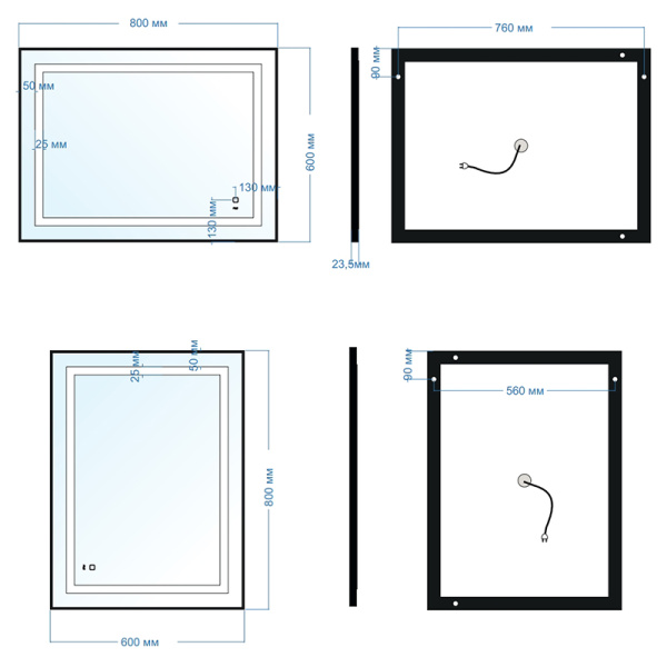 Зеркала для ванной комнаты 60 см
