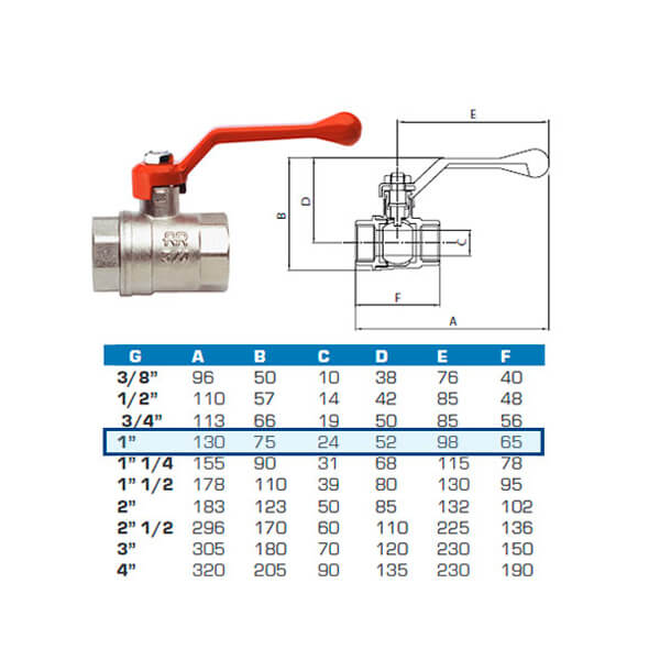 Кран 1" г/г ручка-рычаг RR 371 Remer 37110