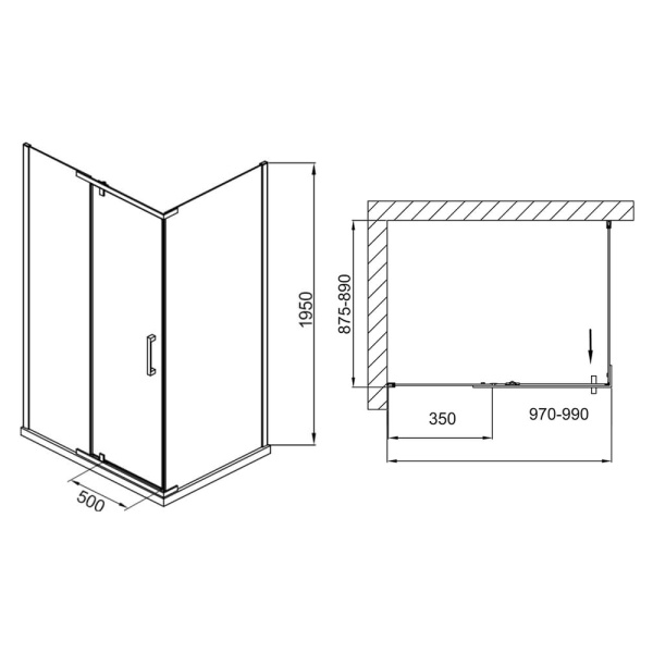 1. Распашные душевые уголки