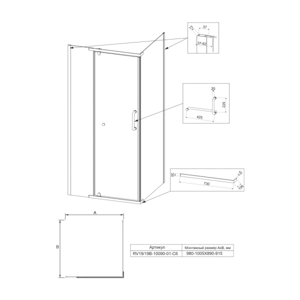 Душевой уголок BelBagno Unique UNIQUE-AH-1-100/115-90-C-Cr 100-115х90 профиль хром, прозрачное стекло