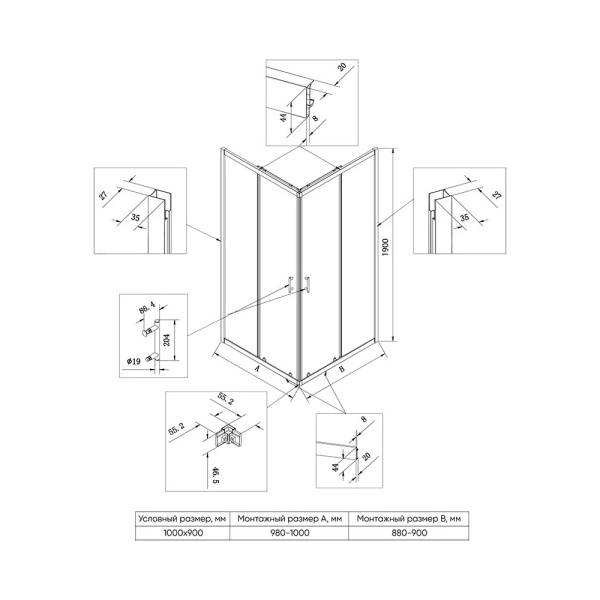 2. Раздвижные душевые уголки
