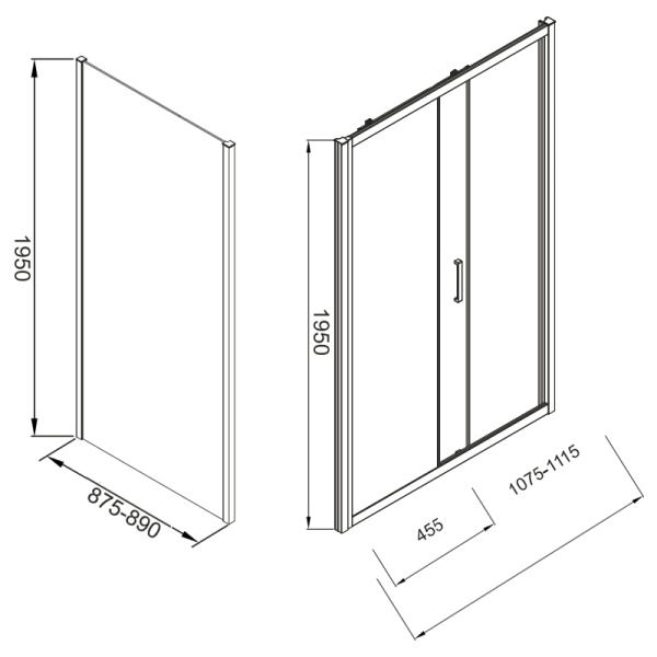 Душ угол раздвижной 1100х900х1950 стекло прозр 6мм профиль хром VECONI