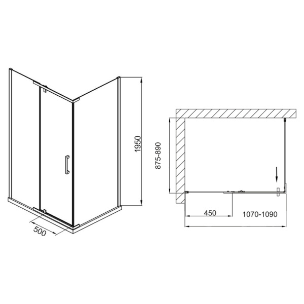 1. Распашные душевые уголки