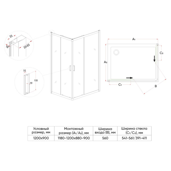 5. Прямоугольные и квадратные душевые уголки