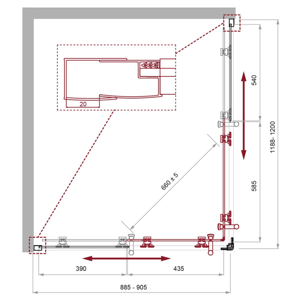 2. Раздвижные душевые уголки